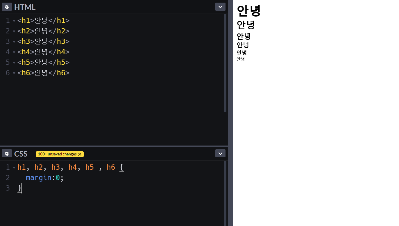 h 시리즈 태그에는 기본적인 margin이 들어있다.