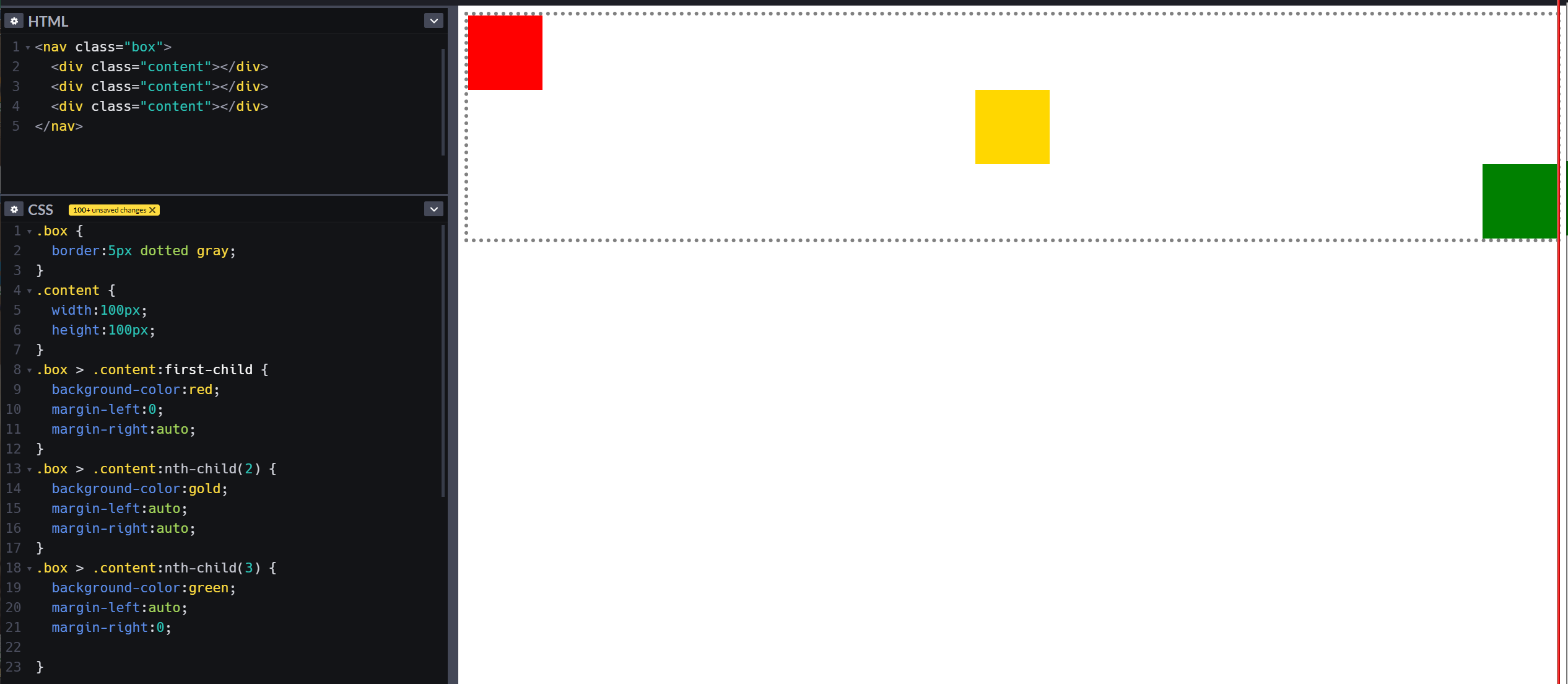 3. 오른쪽 : margin-right:0; margin-left:auto 로 왼쪽에서 놓아주어야 오른쪽 0을 나타낼 수 있다.