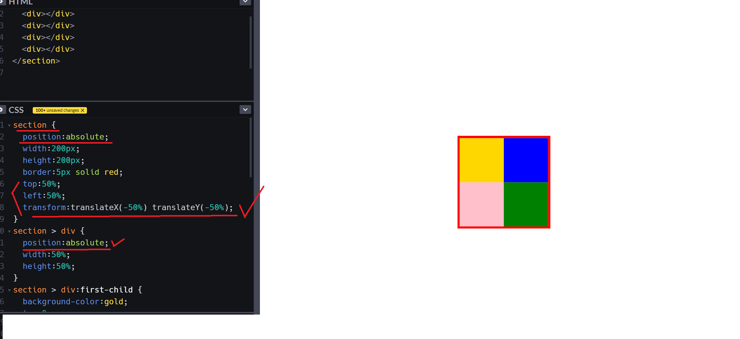 (★ 정중앙 위치 활용 팁 : "transform:translateX(-50%) translateY(-50%); )