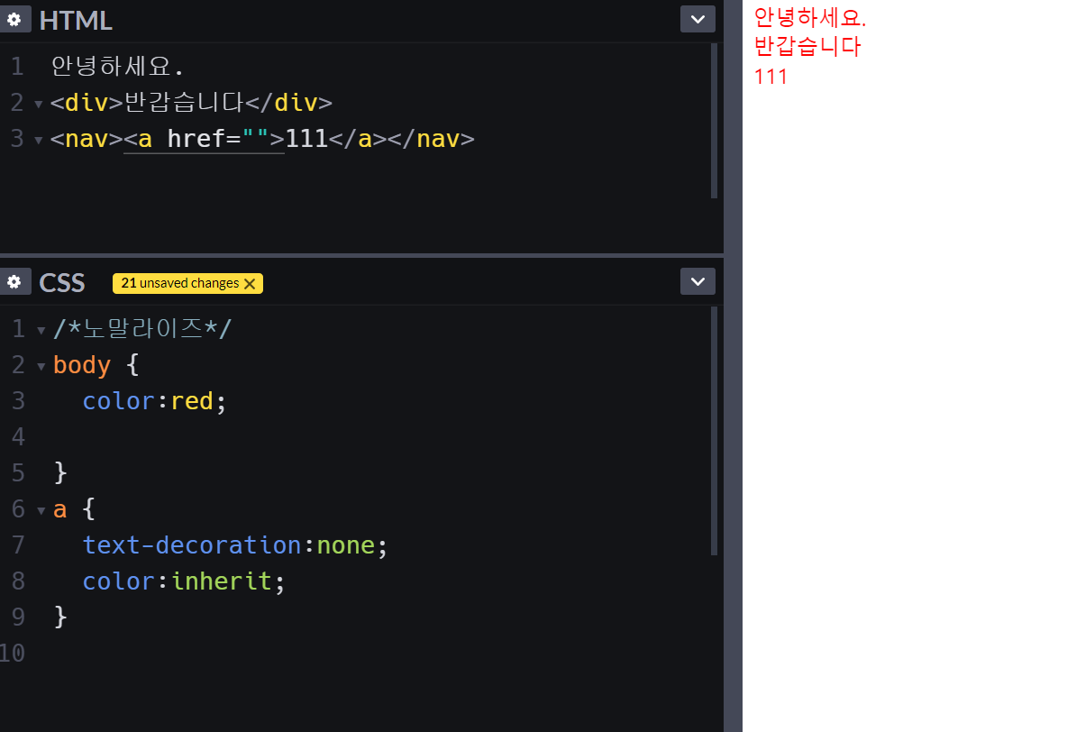 코드펜 만의 특징으로서 body 에 "min-height:100vh;" 를 해주면 화면 전체가 body가 된다는...