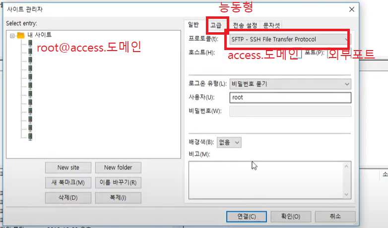 - 프로토콜 : SFTP