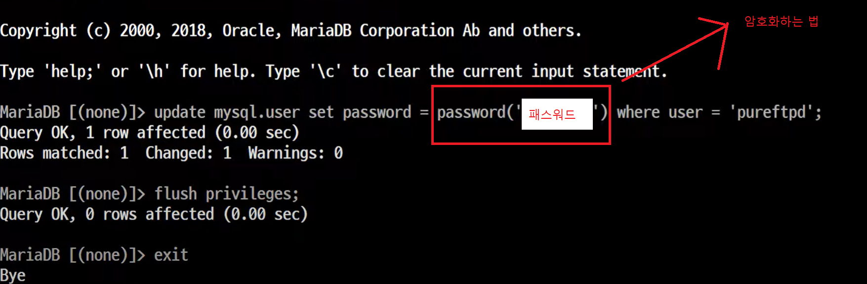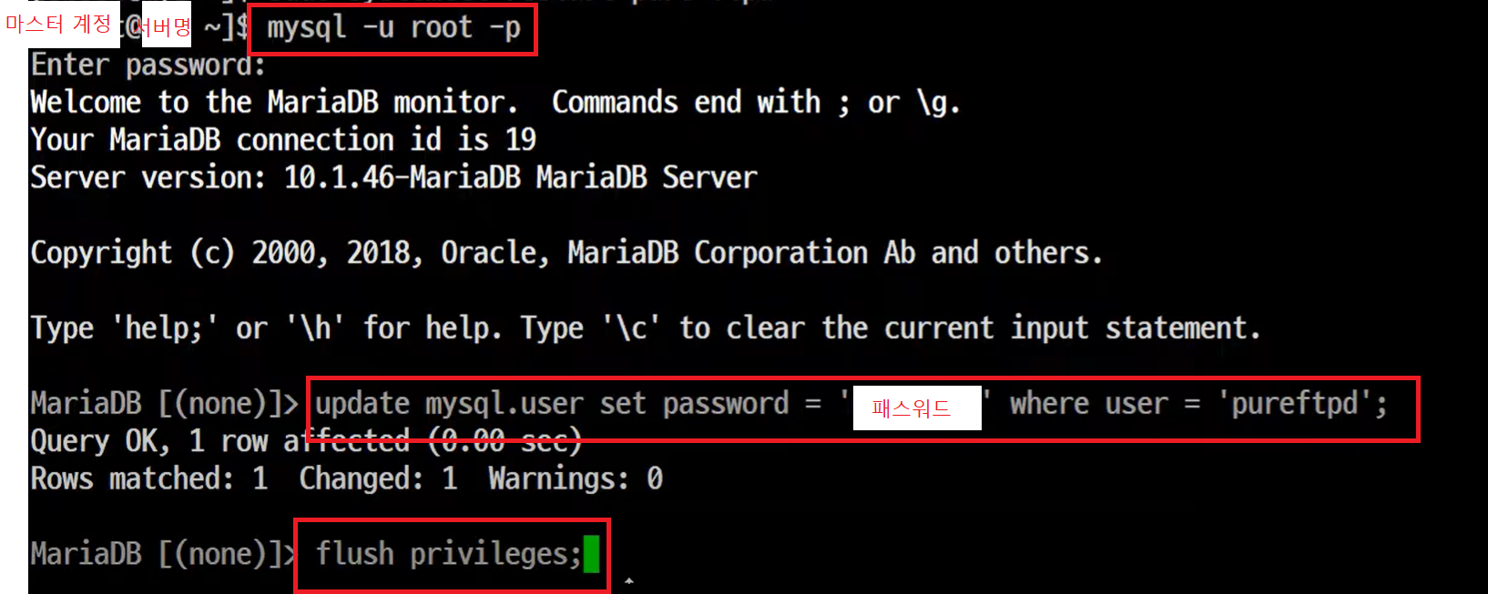- 최초에 필히 바로 password를 변경해주도록 한다.