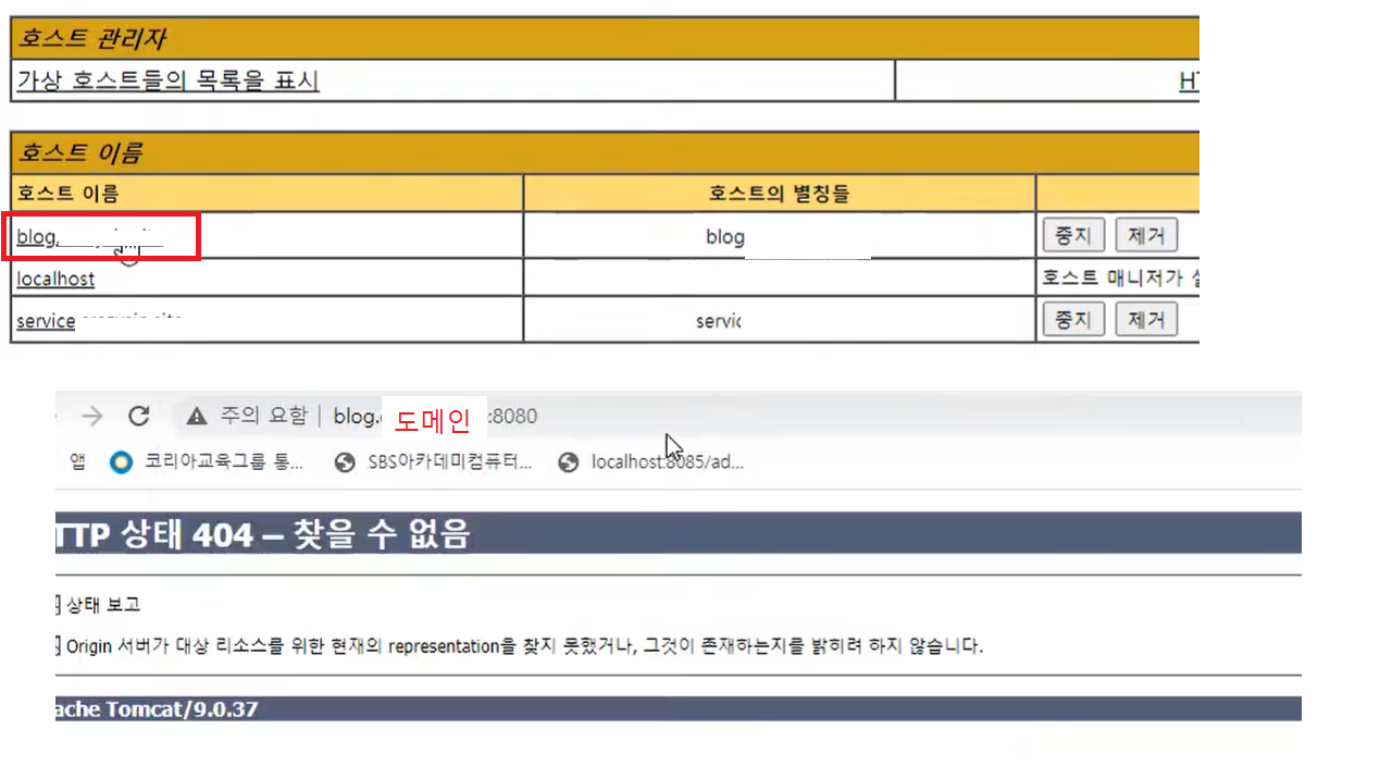 71. 위의 상태에서 blog.test.test(도메인):8080/manager 라고 입력했을 때,