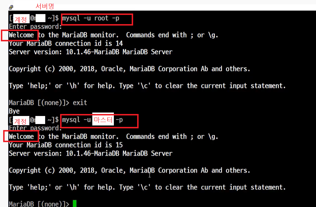 - 마스터 계정(리눅스 계정)을 만든 후에는 나만 아는 계정으로 해킹 위험을 root계정을 사용할 때 보다 낮출 수 있다.