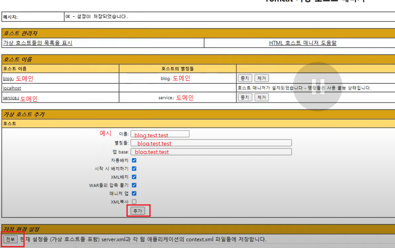 - host-manager에서 가상 호스트들을 추가하고