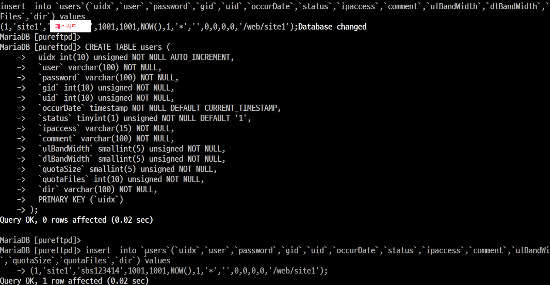 - 새로 만드는 계정의 비밀번호를 설정해주는 명령어