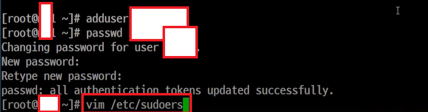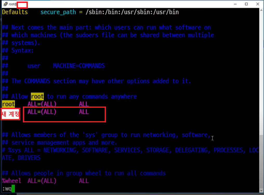 - 새 계정 ALL=(ALL) ALL 입력