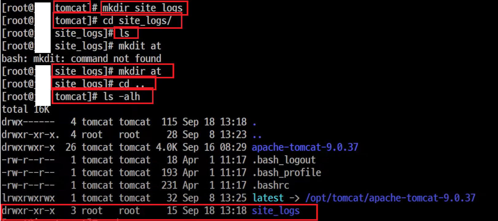 - chown tomcat:tomcat -R site_logs/ 명령어 입력