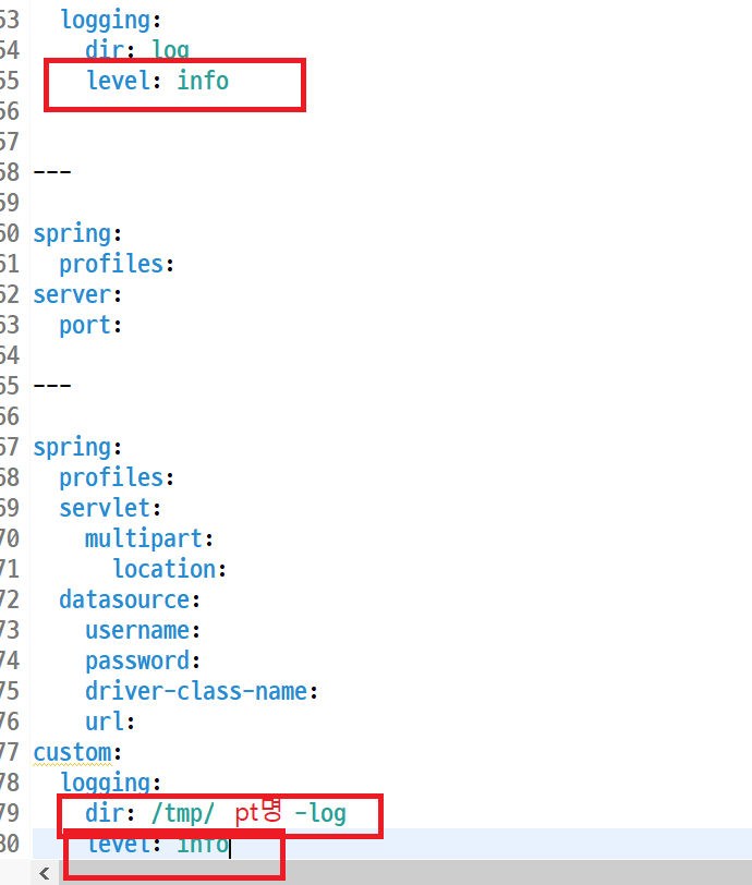 level: info 로 나중에 수정을 해주었음. (10번 쯤에서)