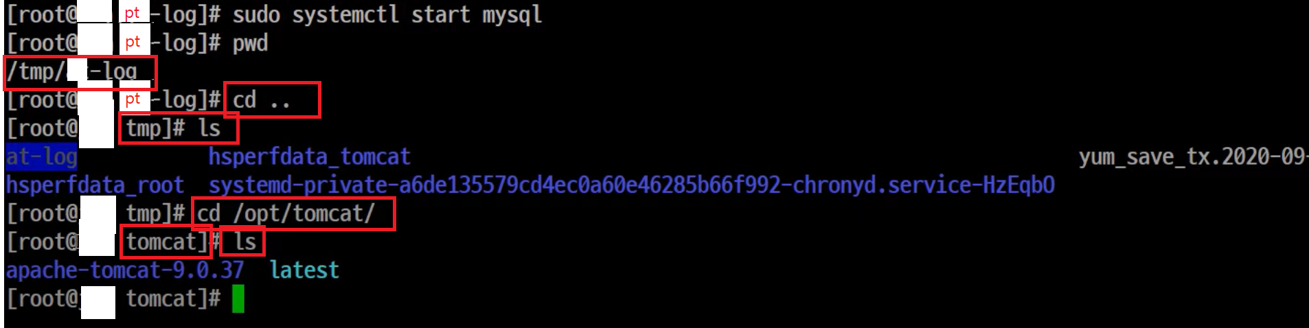 - cd /opt/tomcat/ 명령어 입력 (tmp폴더에서 사용)
