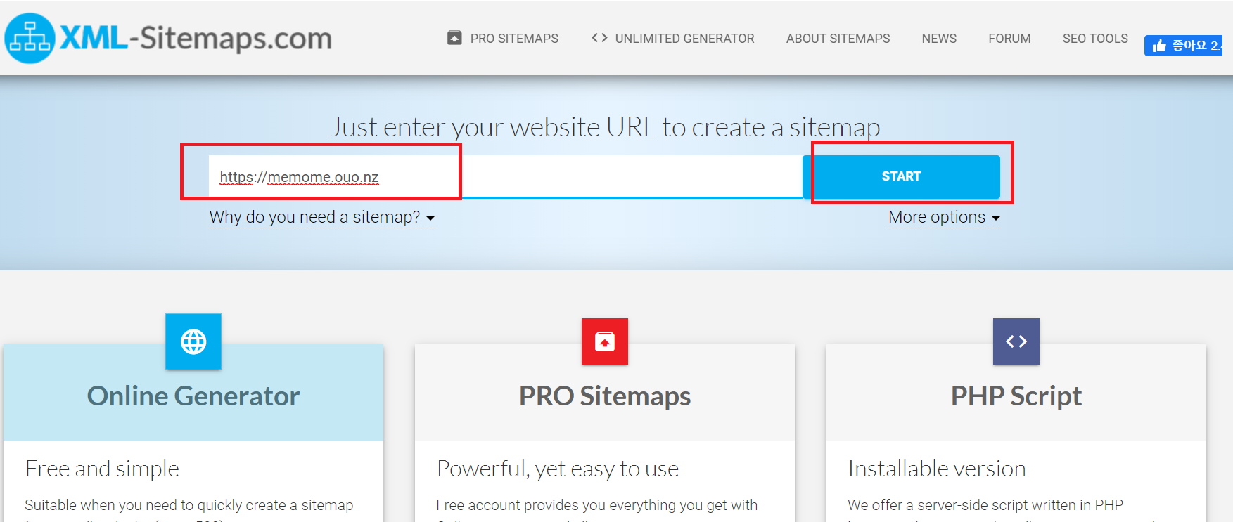- XML Sitemaps Generator : Create your Google Sitemap Online 접속