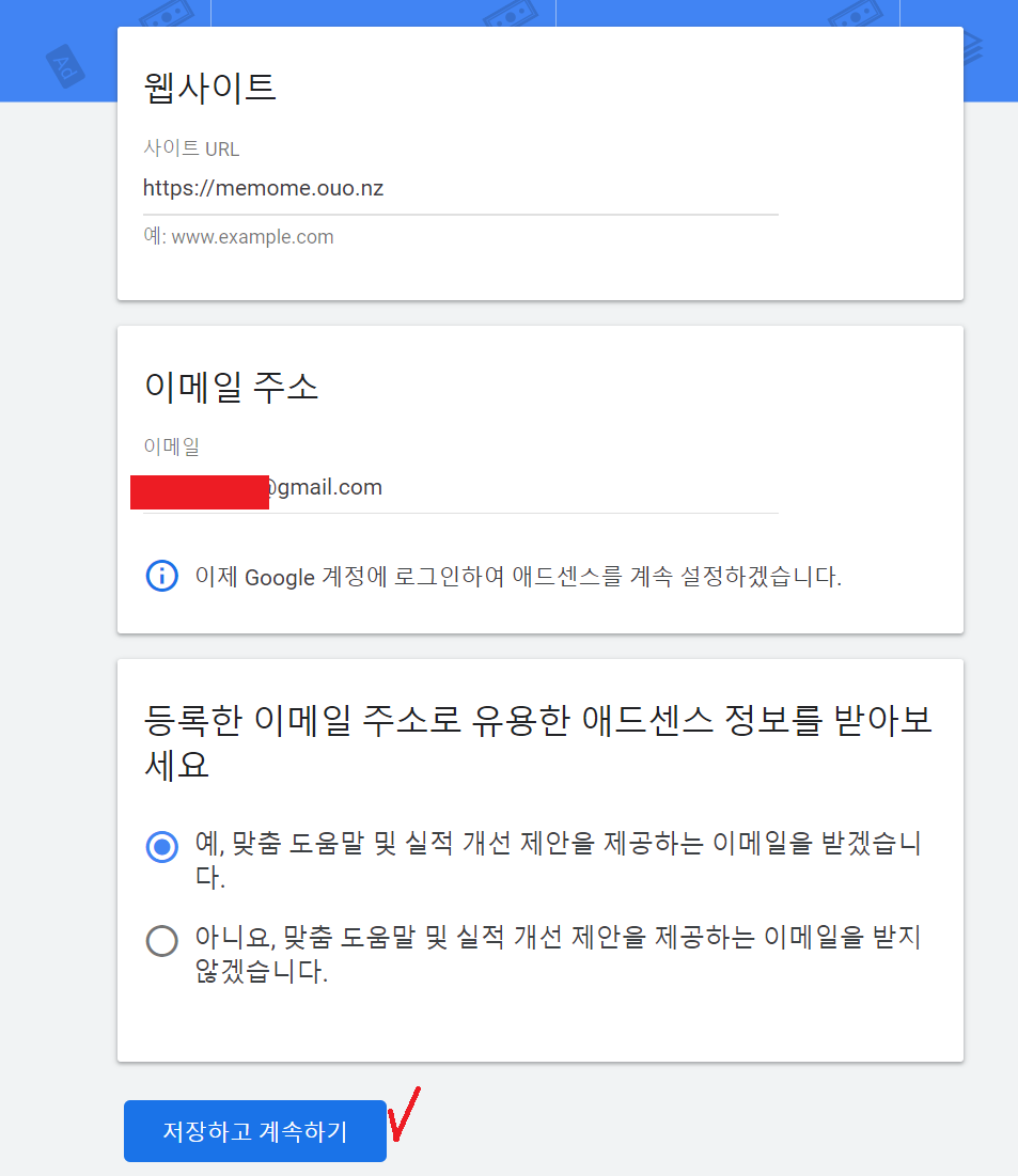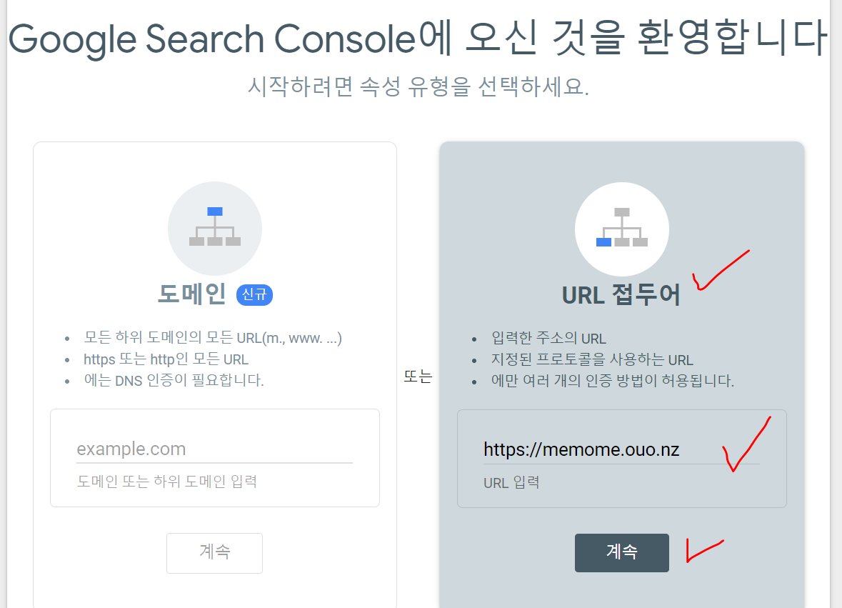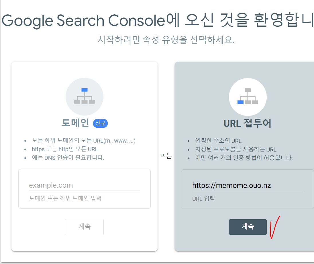 - 그래서 일단 memome.com으로 입력하고 저장하고 계속을 클릭한 다음에