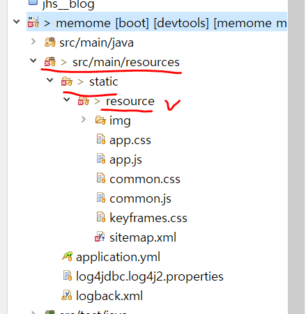 - 잘라내기한 파일을 resources/static/resource 안에 붙여 넣는다.