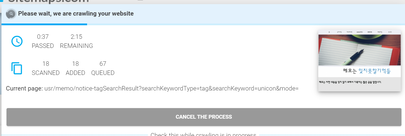 ※ 구글에서 메모미를 검색했을 때, 검색이 되기까지는 sitemap.xml 파일을 제출하고 1~2일이 지난 후에 가능할 것이다.