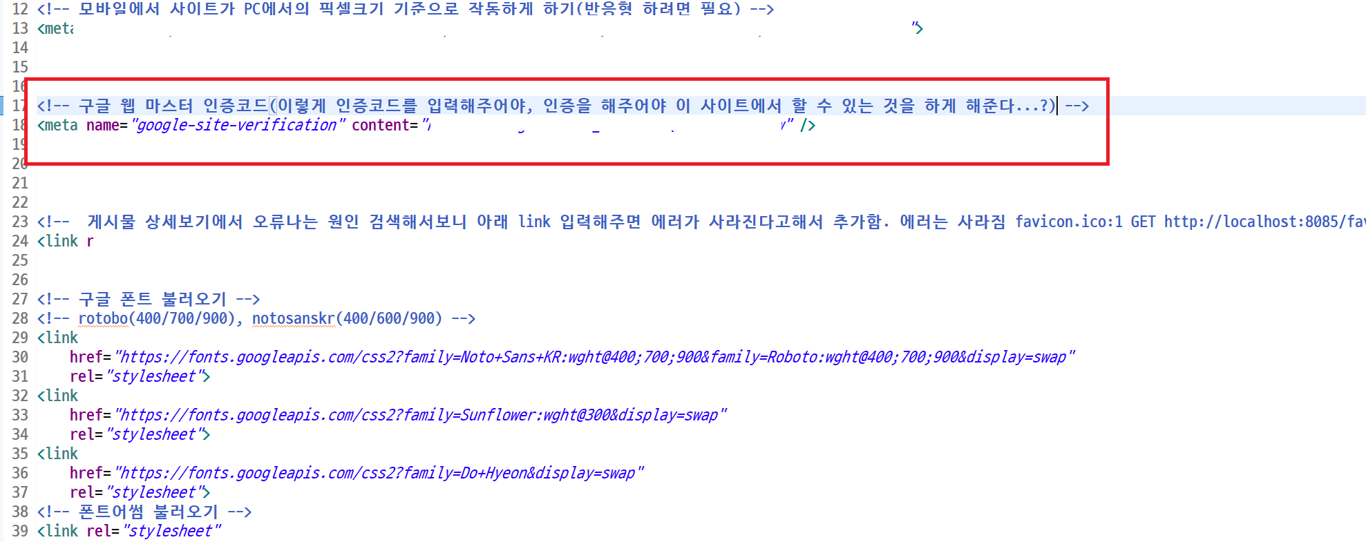 head.jspf에 </head> 안에 인증코드를 입력한다.