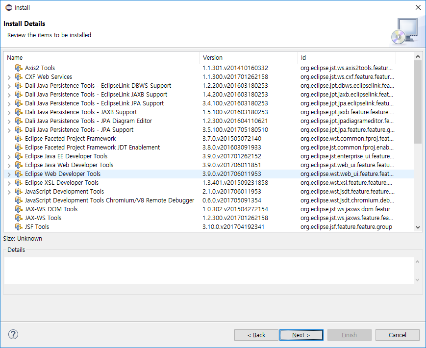 목록에 EE와 Web이 있는지 확인하면된다. 이제 Next와 Finish를 눌러주자.