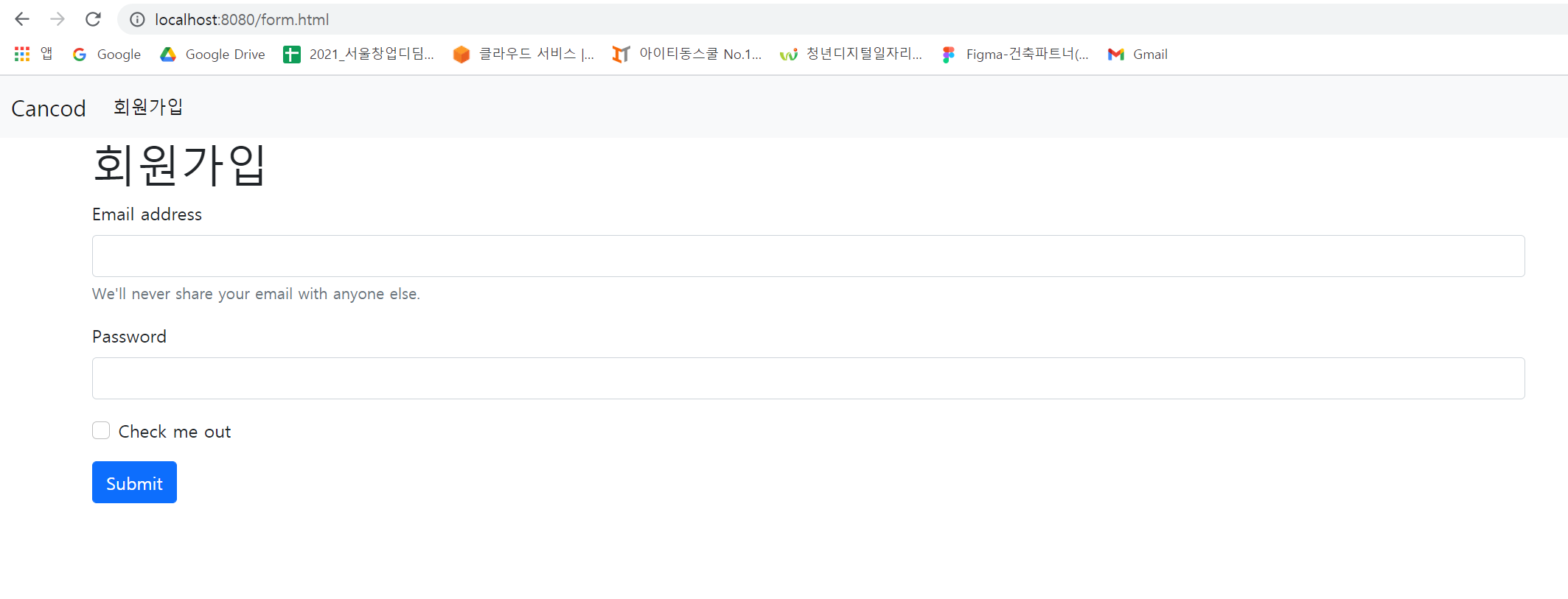 부트스트랩 홈페이지에서 form 관련 코드를 복사해서 구현한 것이다.